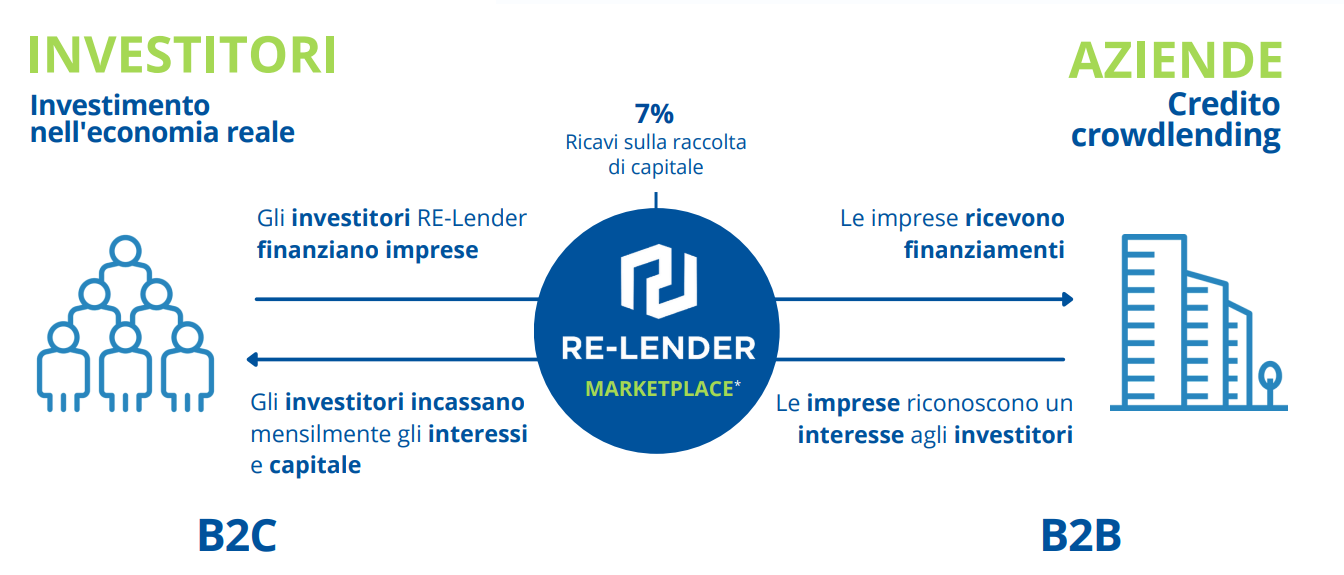 RE-Lender è una piattaforma tecnologica di ultima generazione che tramite il lending crowdfunding permette alle imprese di ricevere un finanziamento da piccoli e medi investitori, che desiderano far fruttare i propri risparmi sostenendo l’economia reale.